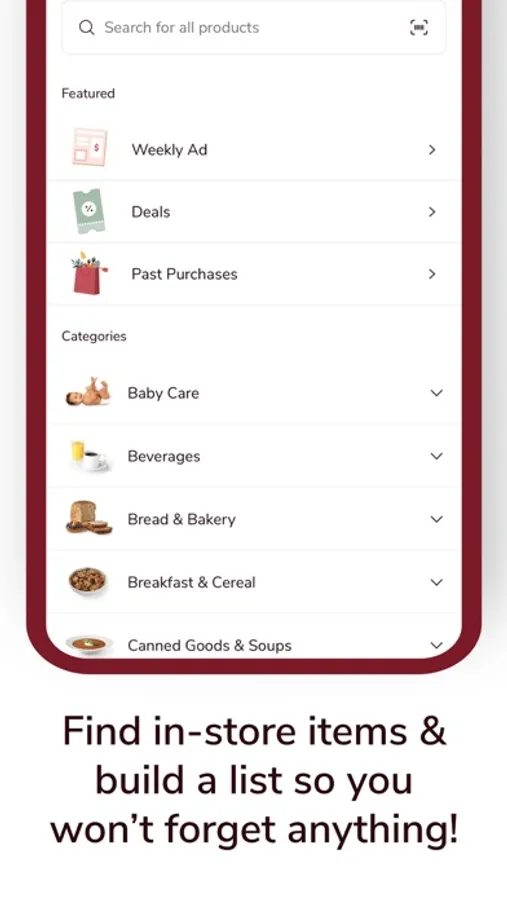 Use the app in store to find items by aisle locations, then scan to check prices and deals.