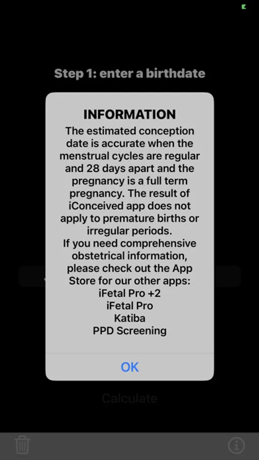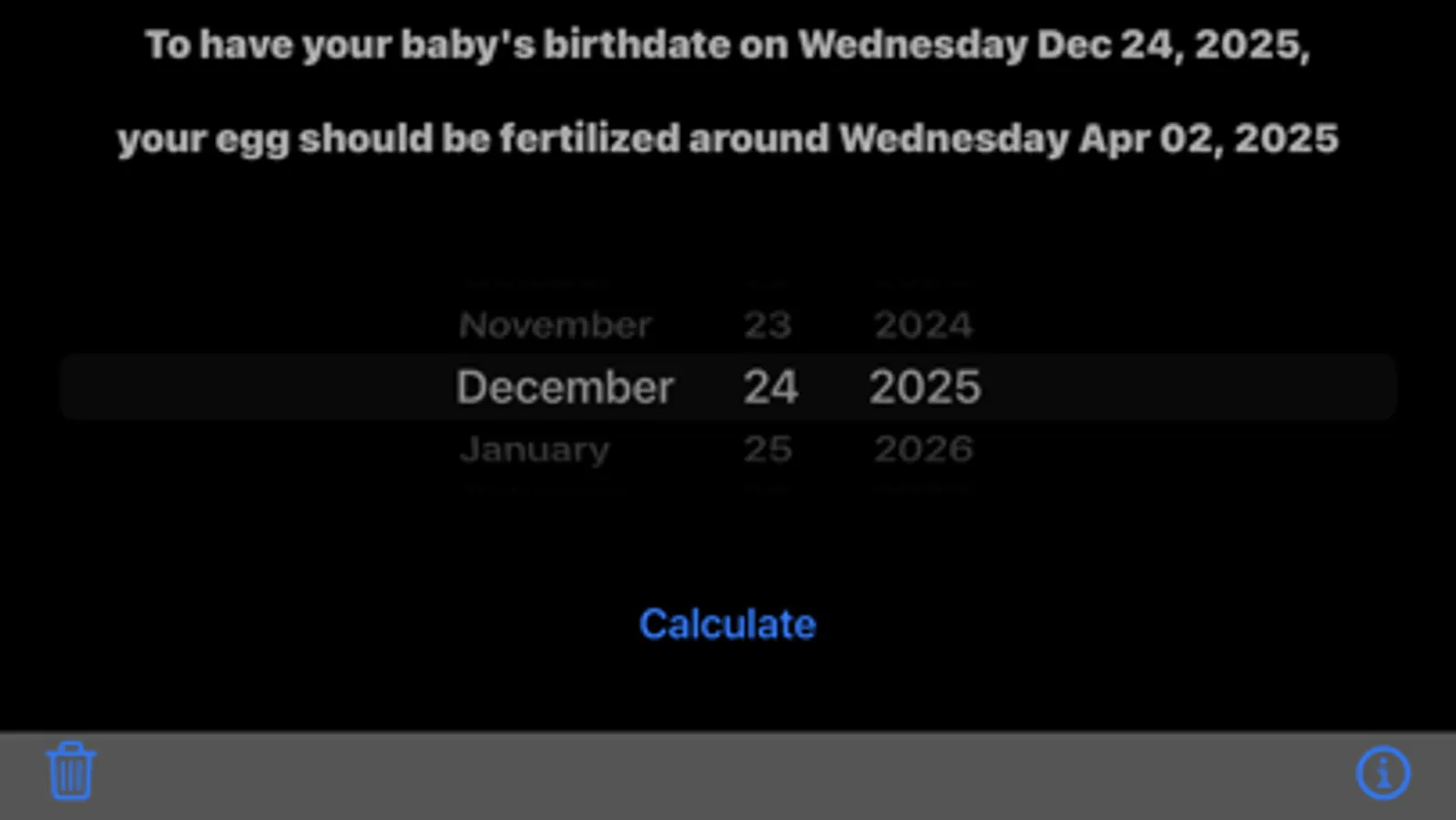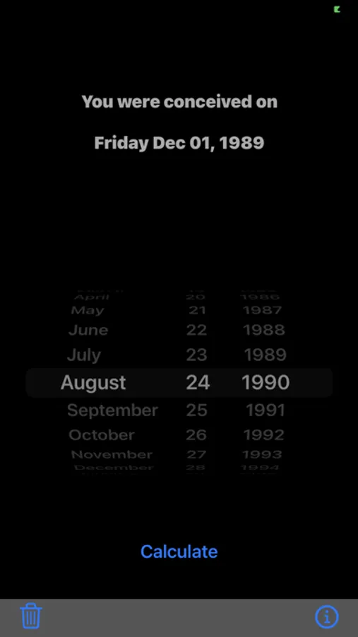 iConceived is a conception date calculator. You can use the app for both yourself and your unborn baby to see when you were conceived or when you should conceive to have your baby born on a particular day. Simply enter the date into the calendar and tap on "Calculate" button to see the conception date.
