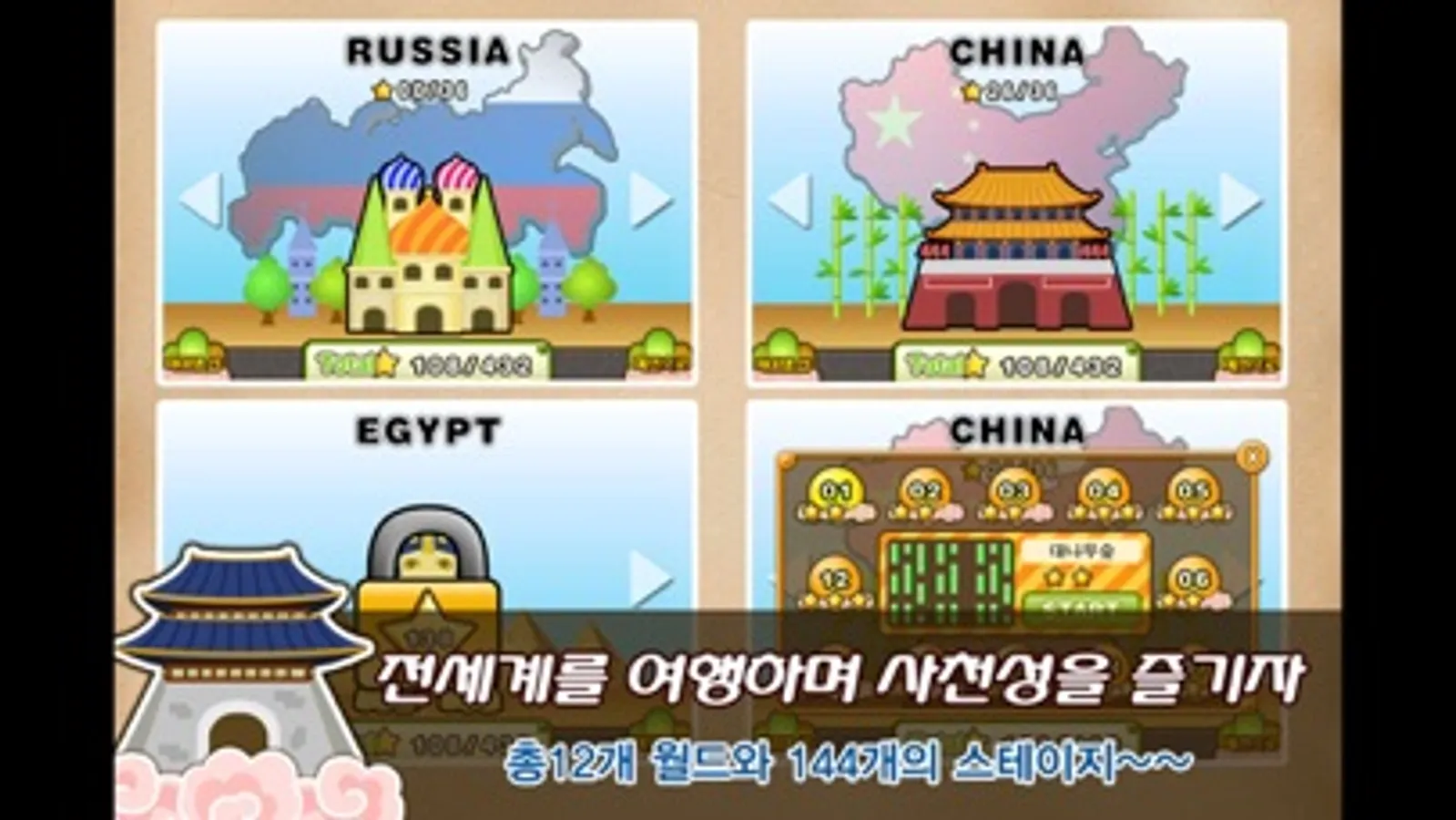 ① 전 세계 18개 나라를 여행하며 사천성을 풀어보세요.