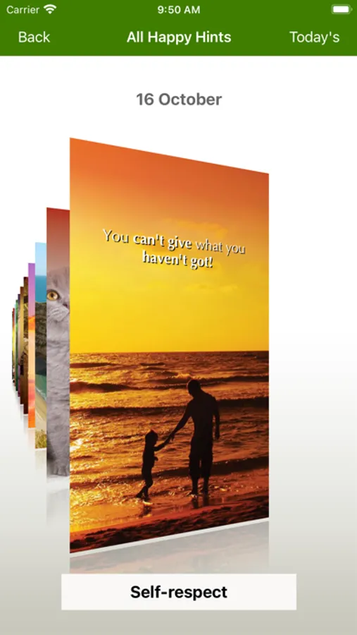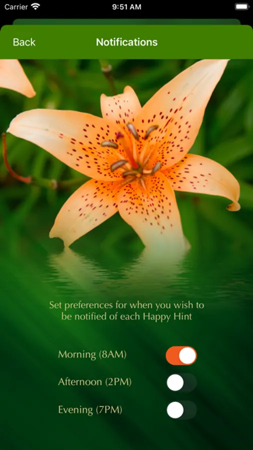 Happy Hints has been designed around an eternal calendar. Every day for the rest of your life you will receive a positive message, beautifully presented. Each message has an expanded summary of that day’s affirmation. The message will be sent to your Apple device 3 times during the course of the day - morning, afternoon and evening. This will provide you with the opportunity to both absorb and more importantly apply the daily message.