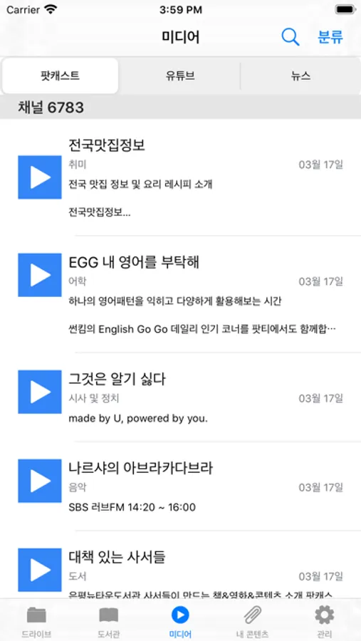 여러분의 베스트 도서, 팟캐스트, 음악도 리드애니 앱 드라이브에 보관해서 감상할 수 있습니다.
