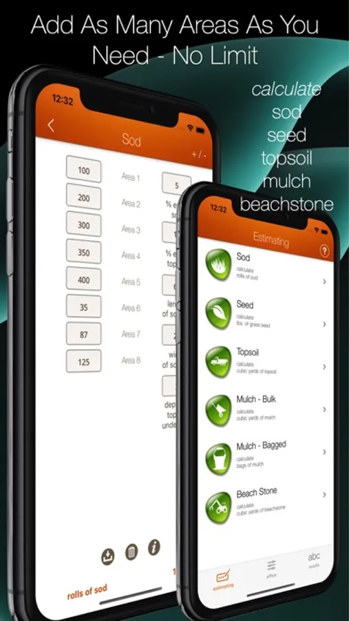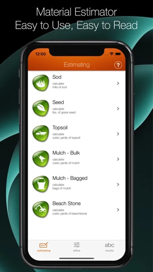 Our Landscape Pro Estimator App is a master collection of industry specific estimating calculators. You'll get our turf calculator including our sod and seed estimator, our topsoil calculator, our mulch calculator including bulk and bagged quantities as well as our beach stone calculator.