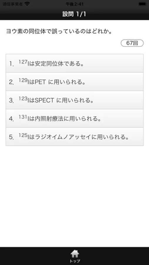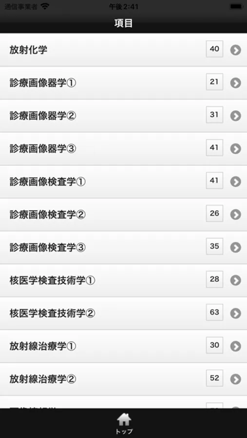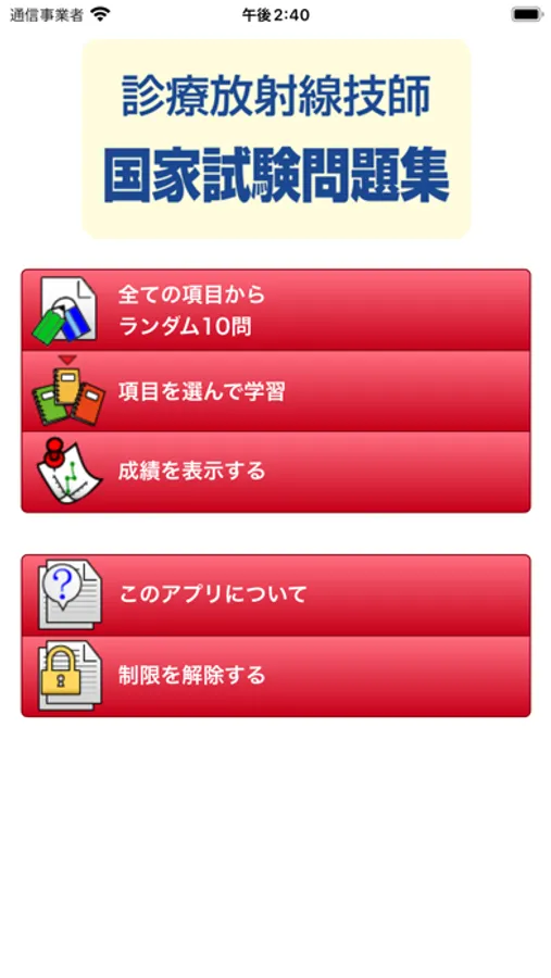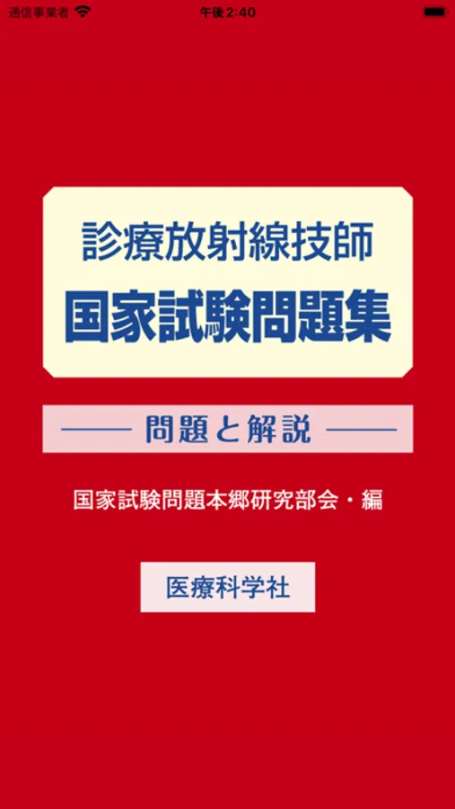 本アプリは『診療放射線技師国家試験問題集』(医療科学社)より,947問の精選問題(第59回~第70回)を,項目別に再構成した内容になっています。