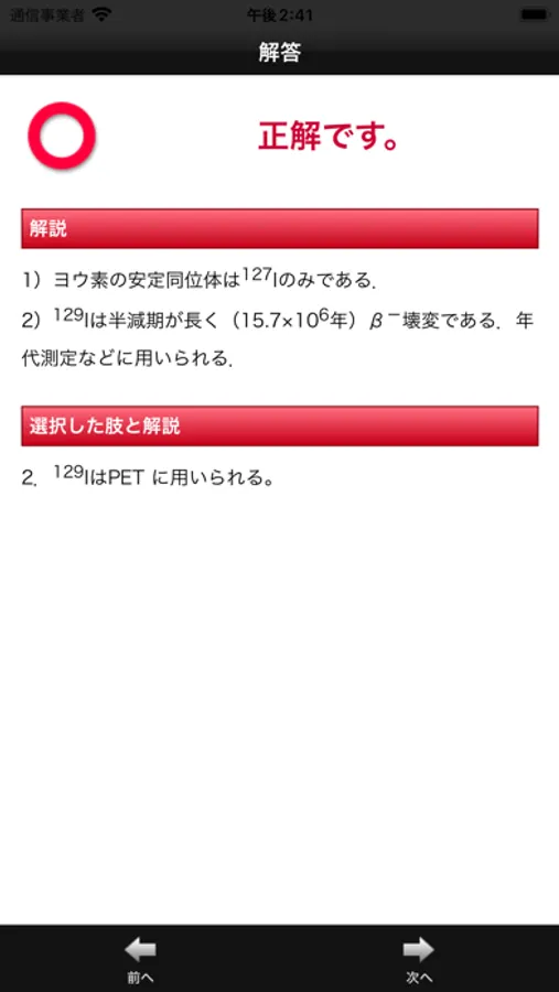 注)選択した項目の途中で終了(他の項目移動,トップページに移動等)した場合,正答率は計算されません。また,途中でアプリ自体を終了すると選択していた問題も終了しますので,ご注意ください(一保存機能はありません)。