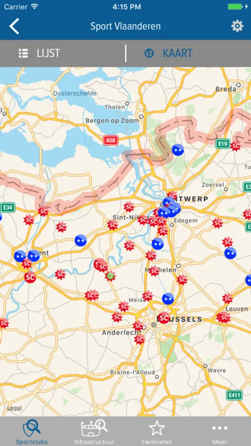 Zoek je een voetbal-, basketbal-, volleybal-, tennis-, zwem-, badminton- of andere sportclub in jouw regio en wil je hun ligging en contactinformatie bekijken op een interactieve kaart?