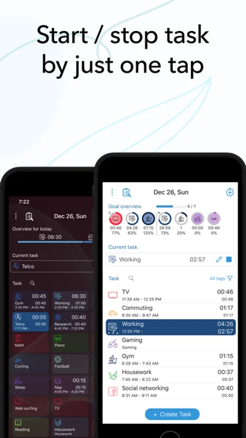 • Start and stop tracking a task with just one tap.