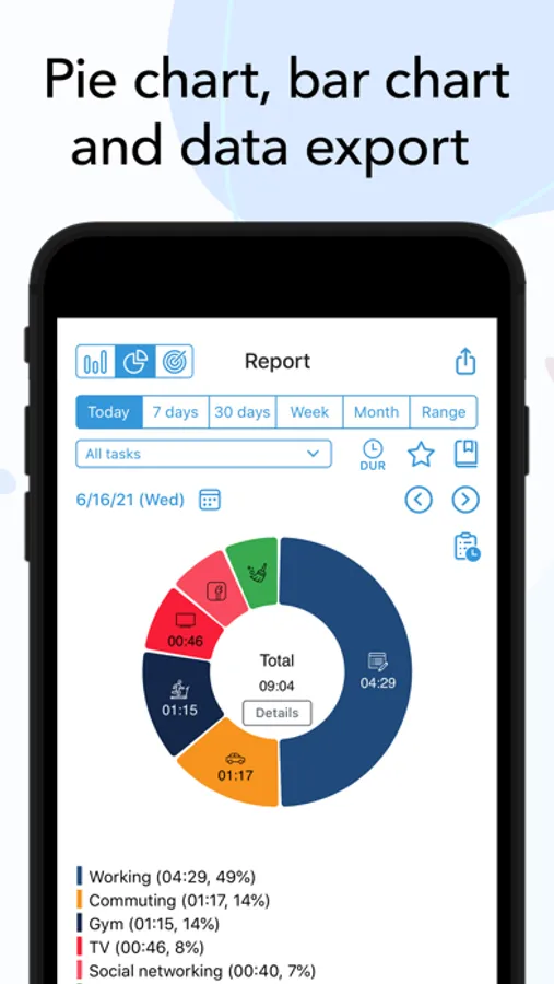 • Overview of today's time spending on the Today tab.