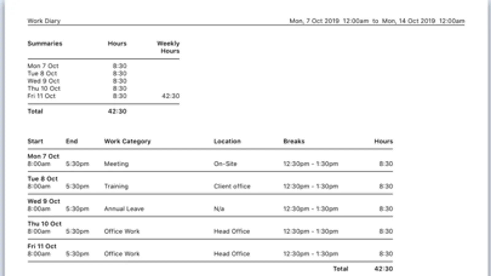 Work Diary is an amazing new App, ideal for logging, planning, and/or reporting your day-to-day work activities.