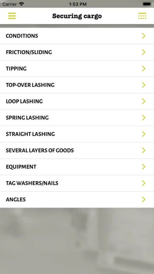 Diffferent tables show you how much load a lashing can secure, but the app also includes an easy to use calculator, which you can use to determine the exact number of lashings required, based on the circumstances for your transport.