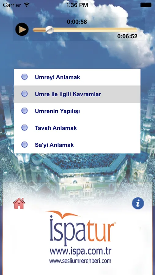 Umre ibadeti süresince yapılacak niyetlerin, daha sonrasında umre ibadetini yaparken okunması gerekli ve okunması makbul olan duaların stüdyo ortamında seslendirilerek umre yolcularının eksiksiz ve bilinçli olarak umrelerini tamamlayabilmeleri için cep telefonlarından dinleyebilecekleri şekilde İspatur tarafından yapılmış sesli bir uygulamadır. İçerisinde umrenin yapılışı, ihram, tavaf, sa’y ve umre süresince yapılacak niyetler ve dualar bulunmaktadır.