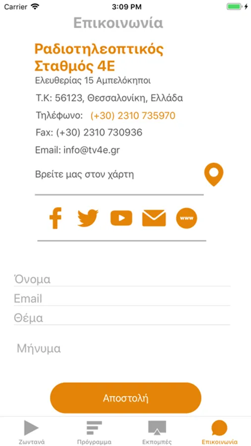 4E TV is the only Hellenic Orthodox Television that broadcasts around the world, through satellite. Its purpose is the spiritual improvement of modern man, the cultivation of religious belief, and the promotion and dissemination of the Christian Hellenic values. The programs of 4E cover fully the range between Information and Entertainment, Education and Culture, as well as Intellectual and Scientific Cultivation.