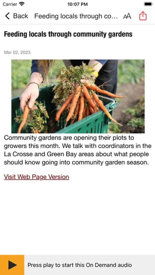 • The Wisconsin Public Radio App displays the web page associated with the program or program segment you are listening to On Demand so you can explore for more information.