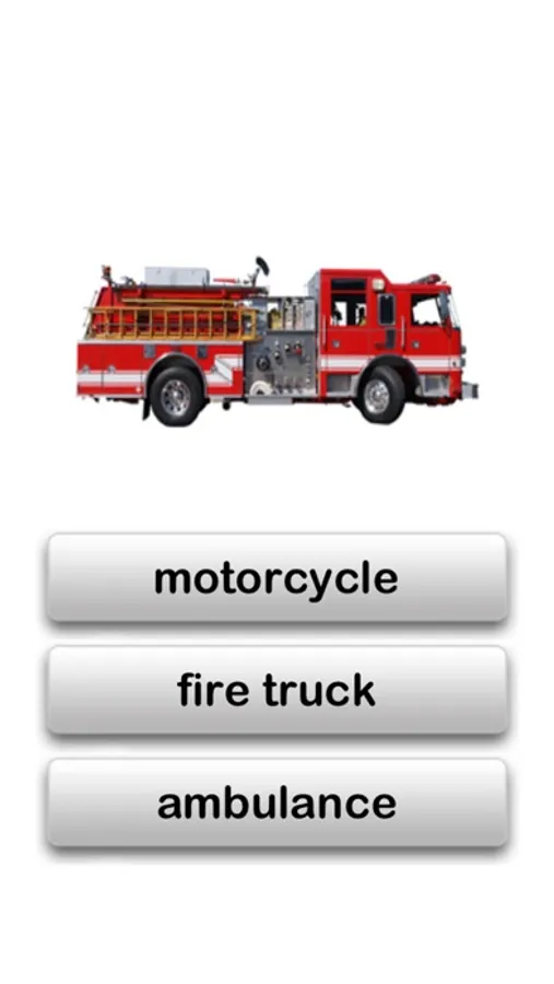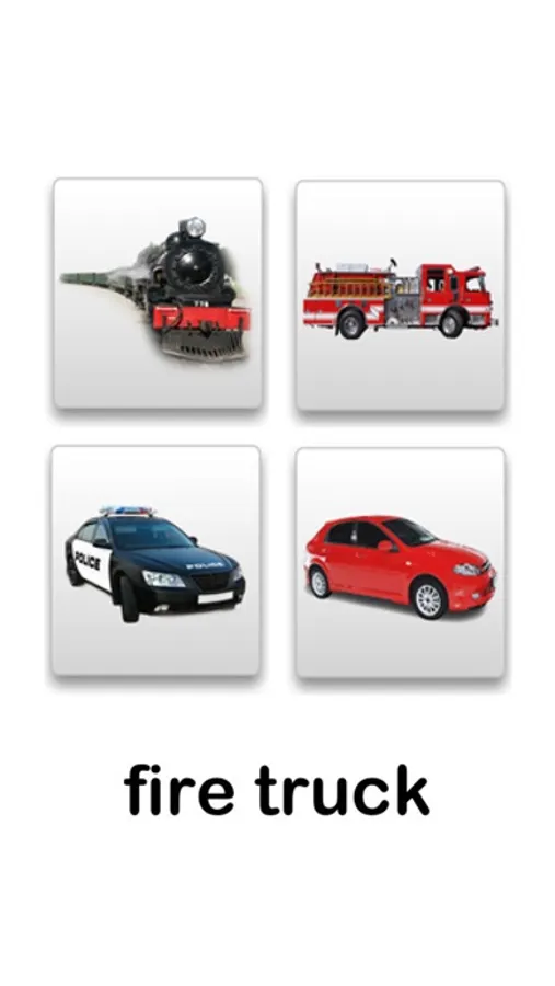 - Labels of all photos with the option to turn off the label as some children with Autism may be more drawn to the written word. At the end of eight images there will be an option to try again, aiding in repetition and drill required for learning new words.