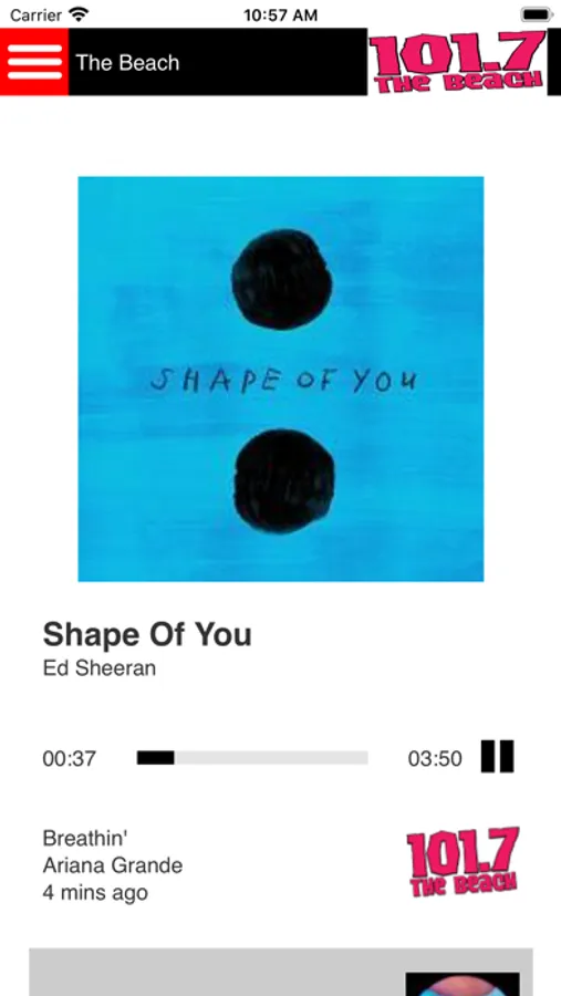 "101.7 The Beach is Playing Today's Hit Music. Download our official App, it's free. Start listening now. Plus, get access to all our videos, podcasts, contests and tons of cool stuff. Use the Beach app to help discover music. See the current song played and the history of all the songs we played. Save songs to 101.7 The Beach FAVORITES PLAYLIST with Apple Music and Play them on Demand.