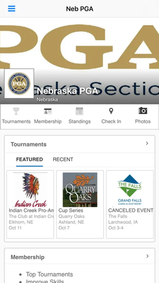 • Check in to Nebraska PGA events and keep the scorecard on your phone.