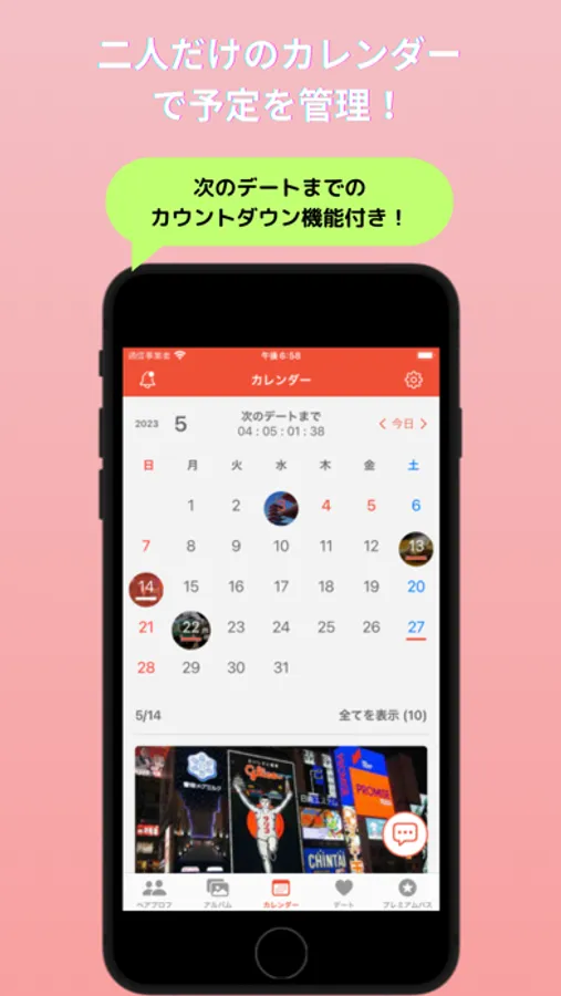 Plan dates, anniversaries, and other events together using a shared calendar. Easily keep track of each other's schedules.
