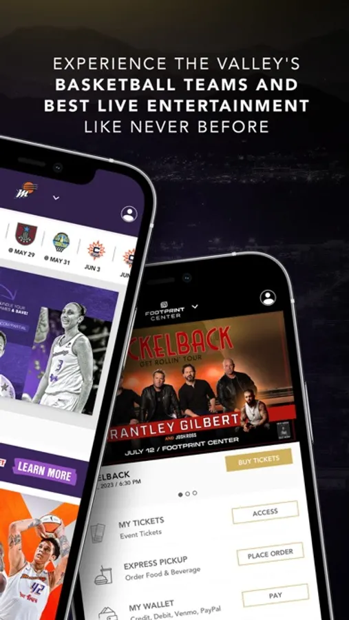 Welcome to the all-new Suns-Mercury-Footprint Center App, where you can experience The Valley’s basketball teams and top live entertainment like never before!