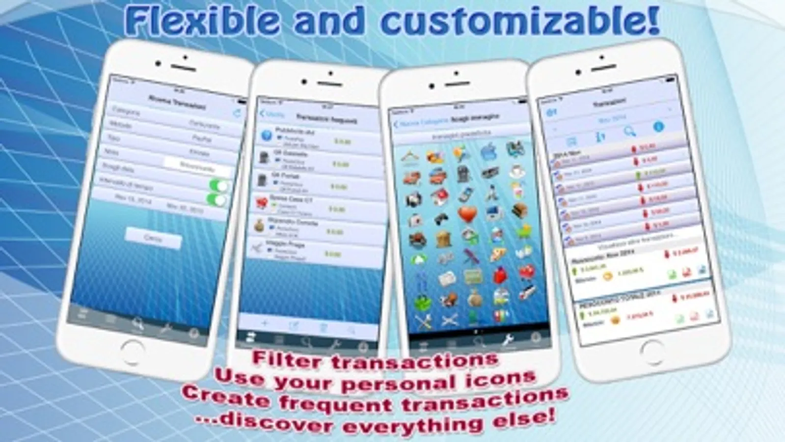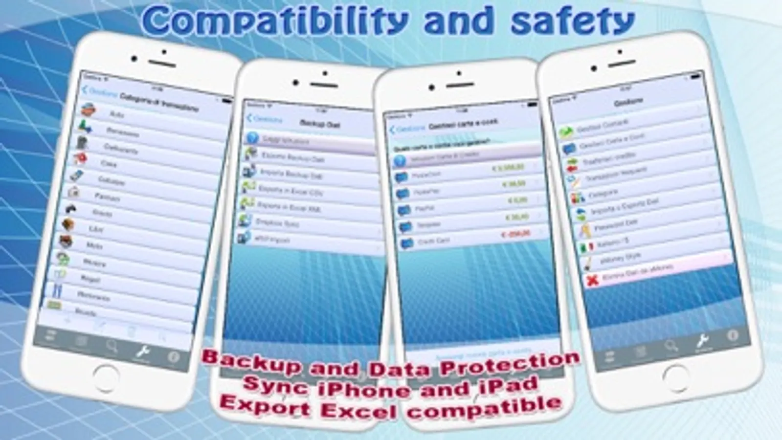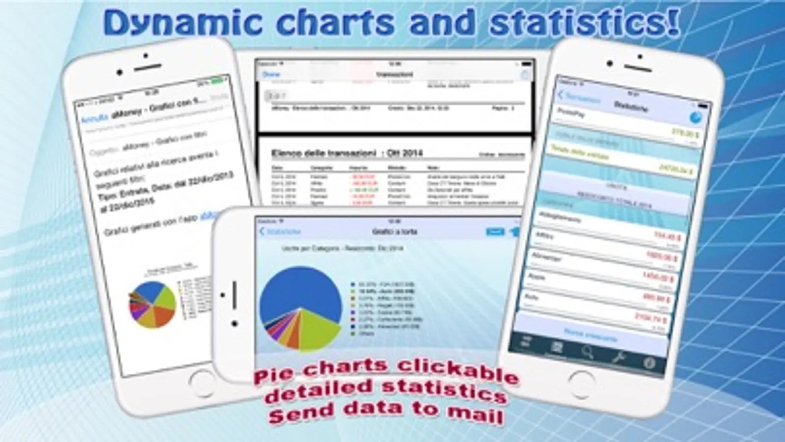 In a few easy steps you can password protect all your movements, view reports, statistics, graphs, and send them by mail, search for transactions by filtering the results, create custom categories, detailed and personalized PDF, backup, export Excel, Dropbox...