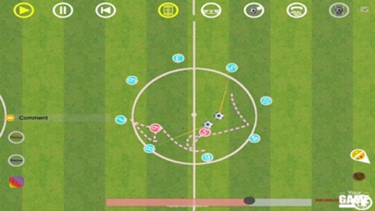 Slow down the animation, focus on the trajectory of one player.