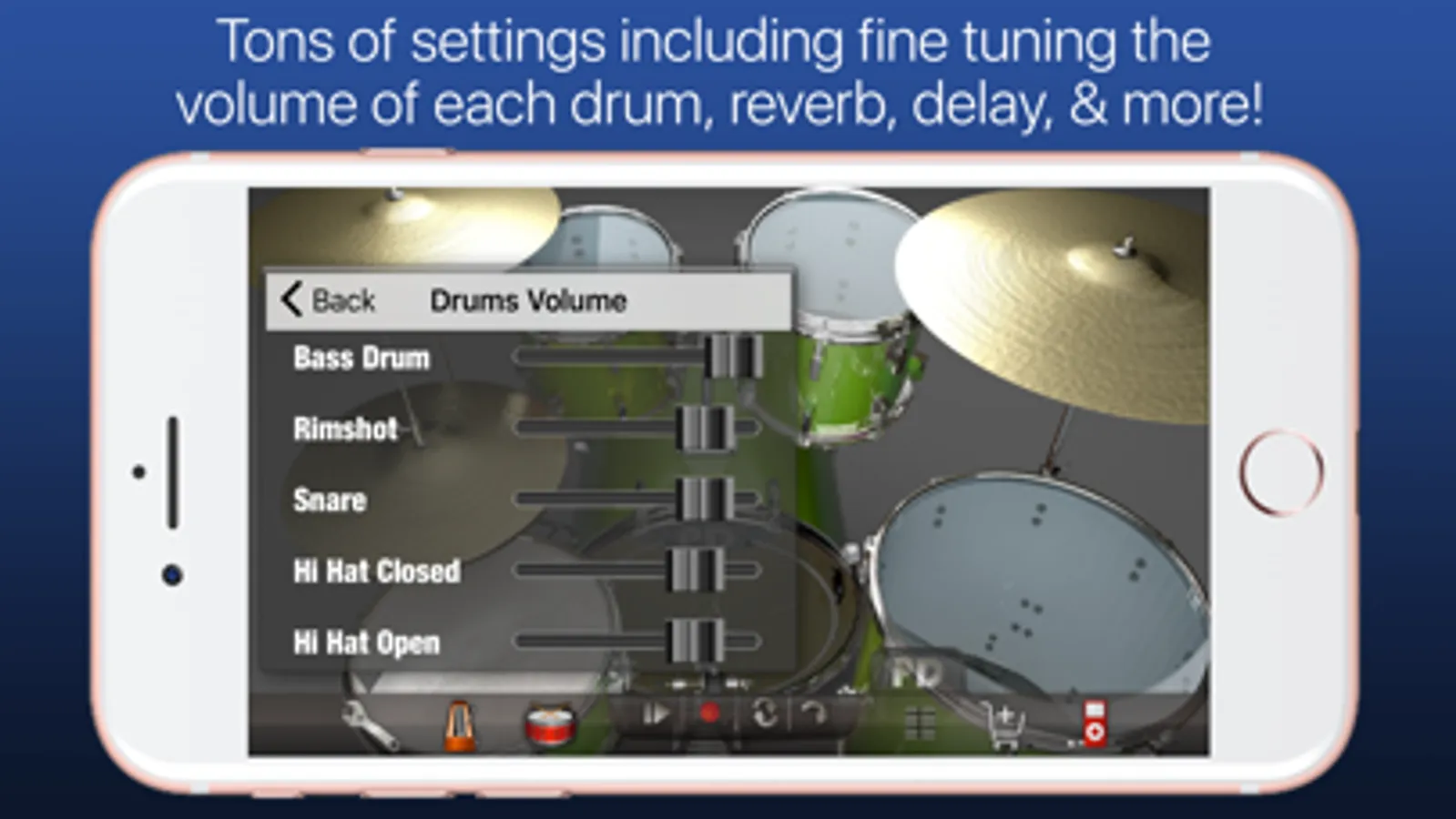 With the ability to adjust the pitch, sensitivity, individual drum volume, reverb, and delay, recording, ability to share and export your recordings (optional in-app purchase), and so much more, Pocket Drums is by far the most comprehensive and realistic drumming app available today!