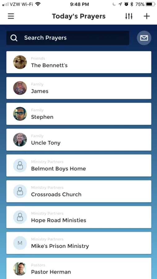 Simply rotate your phone on any prayer list and enter fullscreen Prayer Mode is perfect for quiet times and quickly looking at all the details of a prayer in one place.