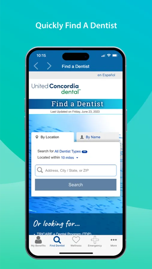 • Dentist search tool to find nearby network providers and view contact information, maps and directions.