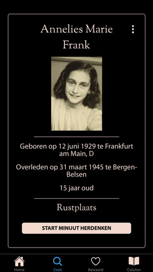 Op 4 mei en 15 augustus herdenken we Nederlandse oorlogsslachtoffers. Met de Herdenkingsapp haal je een van die slachtoffers voor eventjes uit de vergetelheid. Dat kan op een van deze dagen, maar natuurlijk ook op een ander moment.