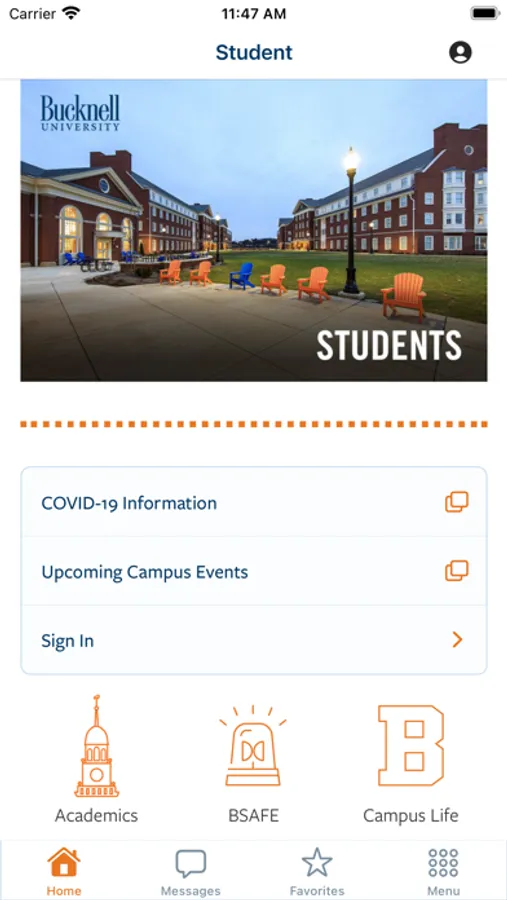 The new Bucknell app tailors content to meet individual user needs with a new look and features. Visitors, students, alumni, parents, faculty and staff can access targeted information to get the most out of their Bucknell experience. Learn about campus events, get directions, check today’s menu, register for classes, find admissions information, explore downtown Lewisburg and more.