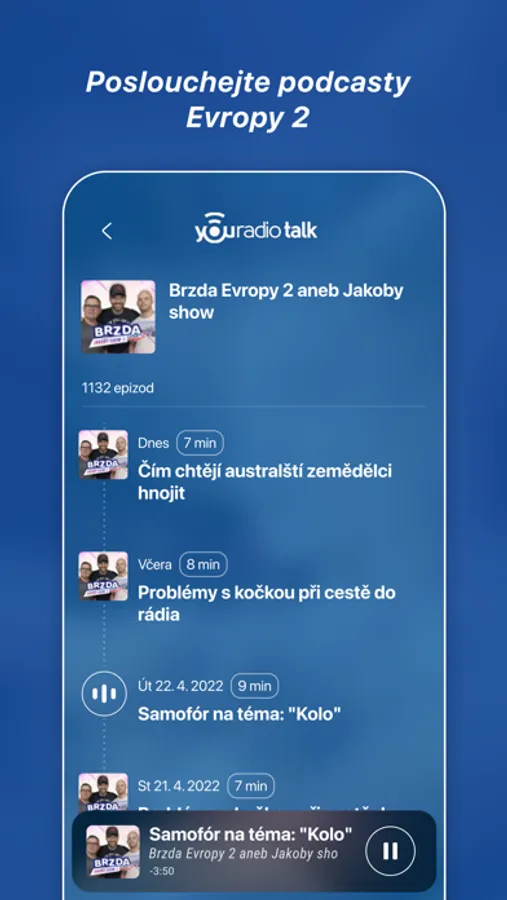 Pokud jste nestihli oblíbenou rubriku nebo pořad, nevadí! Najdete ho v archivu našich podcastů. Jednotlivé epizody uveřejňujeme krátce po vysílání. Bavte se u Ranní show, 3v1, připomeňte legendárního Mrázka, ústřednu nebo další populární pořady.