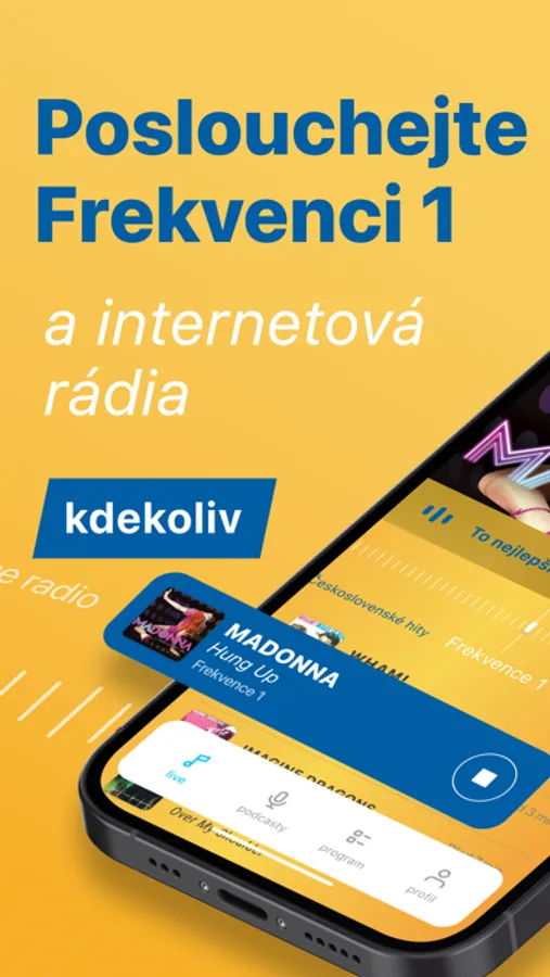 Nalaďte si Frekvenci 1 prostřednictvím aplikace a poslouchejte nás kdekoliv v nejvyšší kvalitě zdarma. Spusťte si živé vysílání, vyberte jedno z našich tematických rádií a připomeňte si nejoblíbenější hity vašeho mládí.
