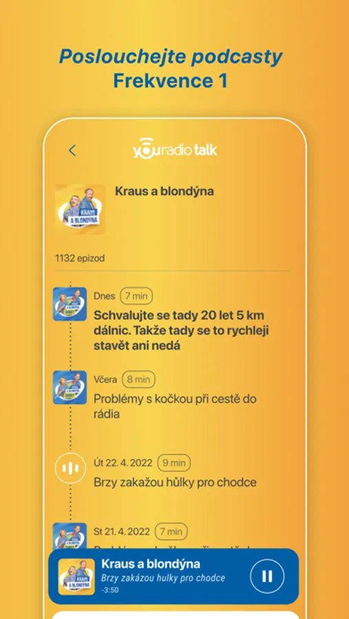 Pokud jste nestihli oblíbenou rubriku nebo pořad, nevadí! Najdete je v archivu našich podcastů. Jednotlivé epizody uveřejňujeme krátce po vysílání. Bavte se u Pokáčovy rychlovky, Krause a blondýny nebo se zaposlouchejte do rozhovorů s osobnostmi Česka v pořadech Host Frekvence 1 a Press klub.