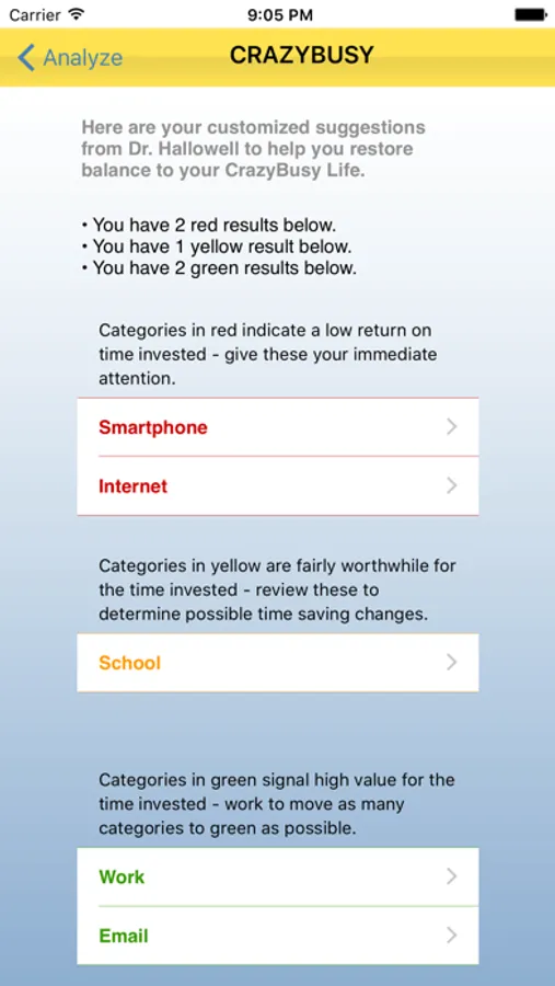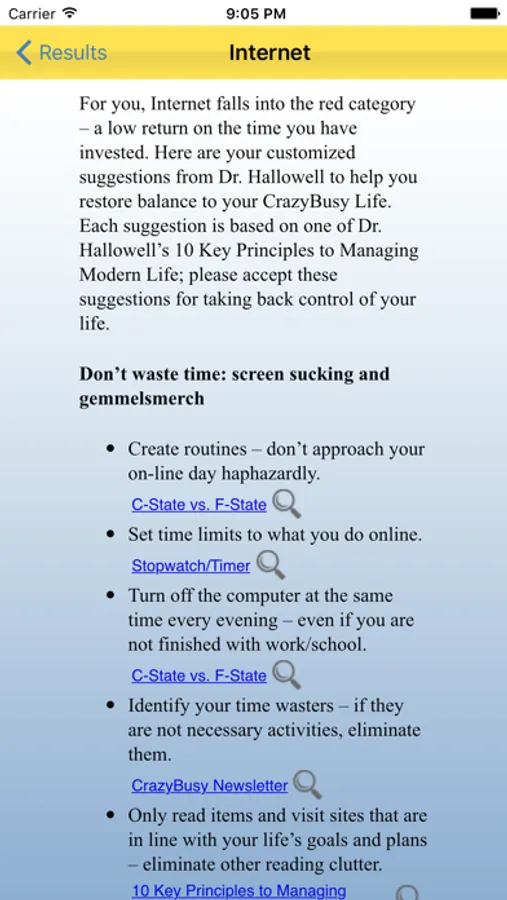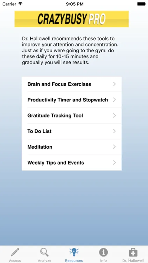 The CrazyBusy app with Dr. Hallowell assists users in prioritizing their time by evaluating and focusing on what matters most regardless of how busy their lives have become. The app has helped many users to get in touch with their needs and take back control of how they really want to spend their valuable time.