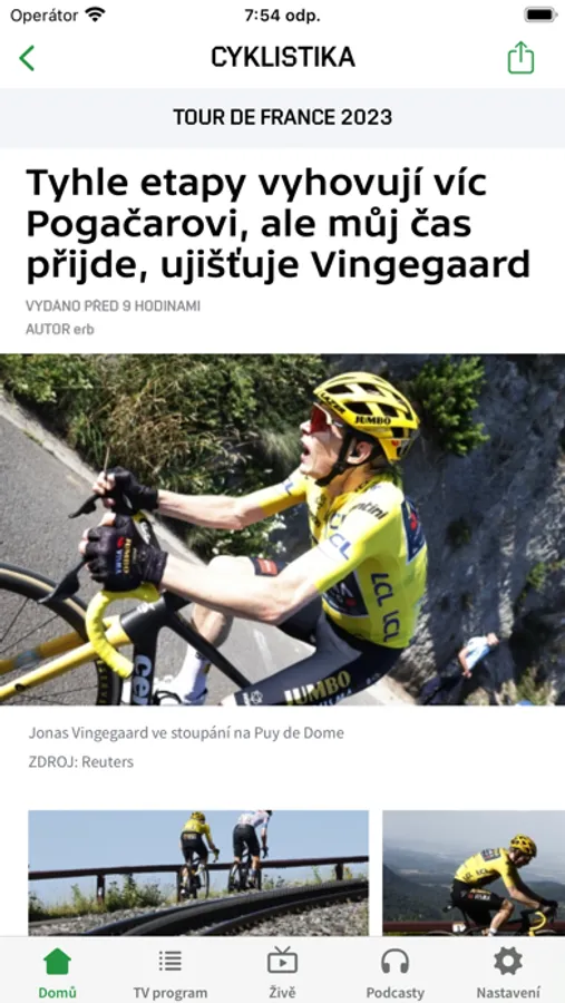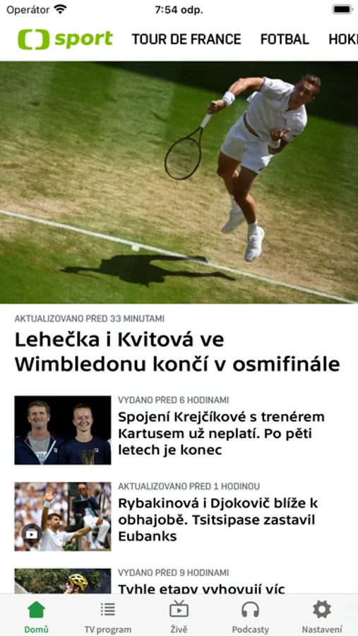 - Sledování jen těch rubrik/sportů, které vás zajímají.