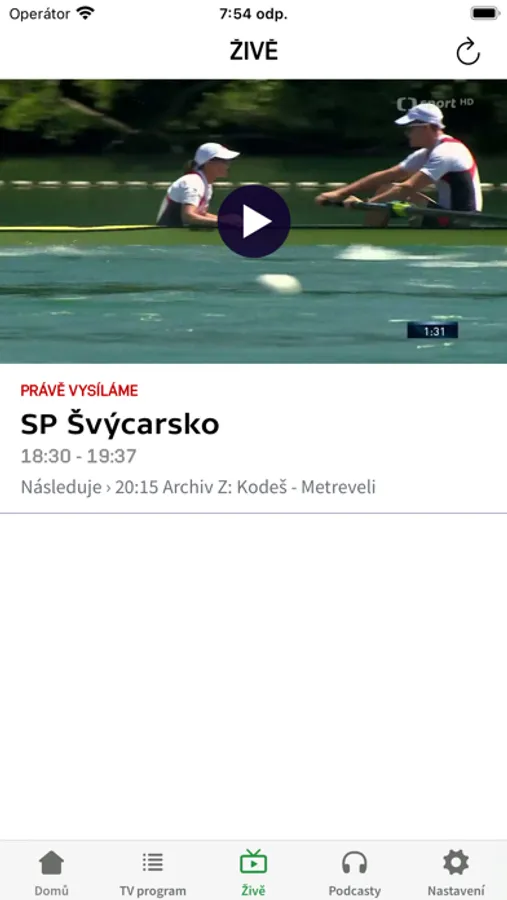 - Sledování živých sportovních přenosů portálu ČT sport.