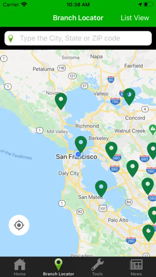 •Search by city, state or ZIP to find the nearest branch within a 25 mile radius