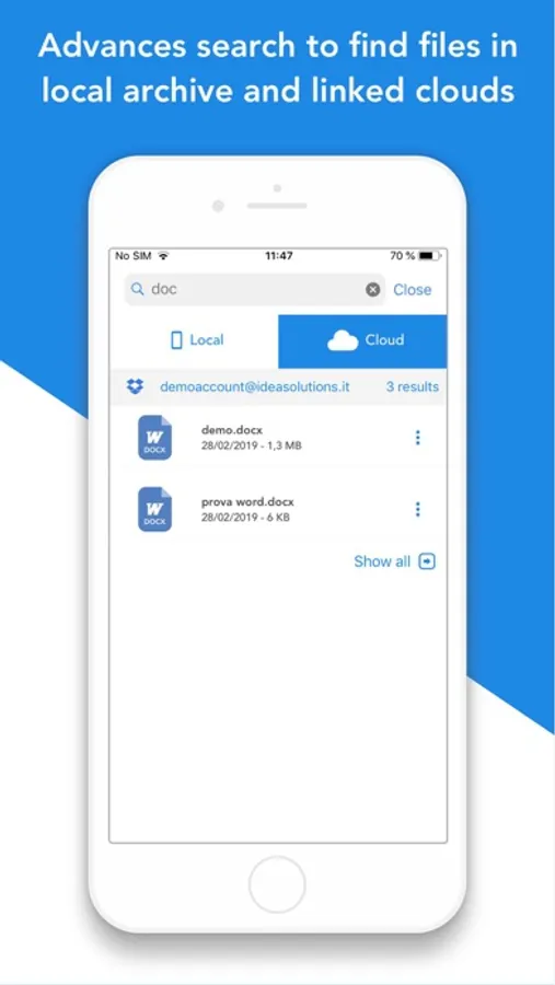 - Search between all contents in the app and in the linked cloud storages thanks to the advanced search