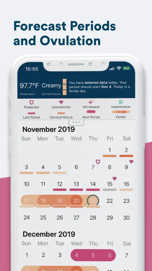 + Receive data-driven predictions for fertility and menstruation based on YOUR actual data, not population averages