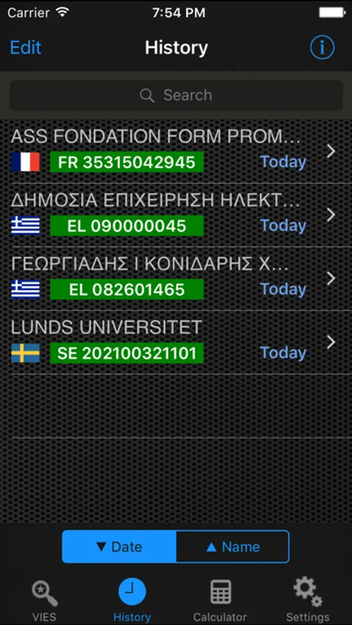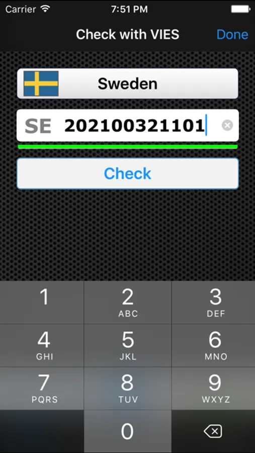 As the user types a VAT number of any EU state, the app examines its correctness ("well-formedness") on-the-fly using the actual algorithms of each EU state, not just the number and type of digits! This step ensures usability and keeps traffic and fees low.