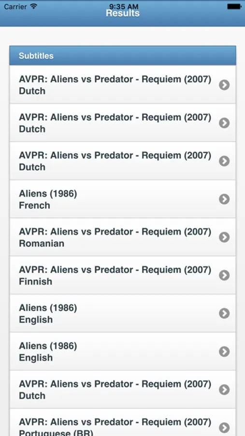 This app uses the OpenSubtitles database, which covers over 1.6 million films in hundreds of languages.