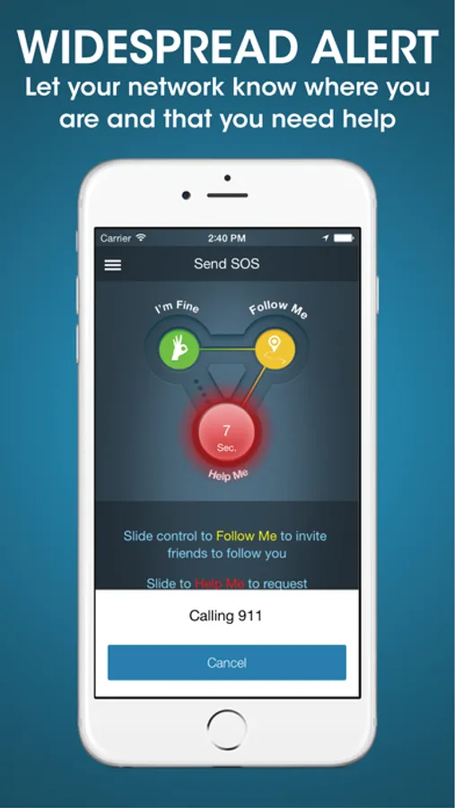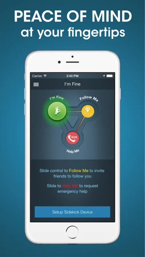 If you’re ever concerned for your safety, simply slide our app control to the yellow ‘Follow Me’ button, which allows you to choose which contacts you would like to share your location with. Your contact list will then be sent an email and a text message with a link to your GPS location. From this link, your loved ones will be able to track your location in real-time. Once you arrive to safety, slide to the green ‘I’m Safe’ button to let them know that you’re okay.