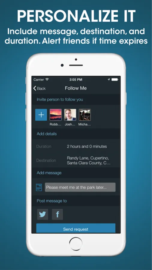 - Share Location with Friends – “Follow-Me” Real-Time Tracking