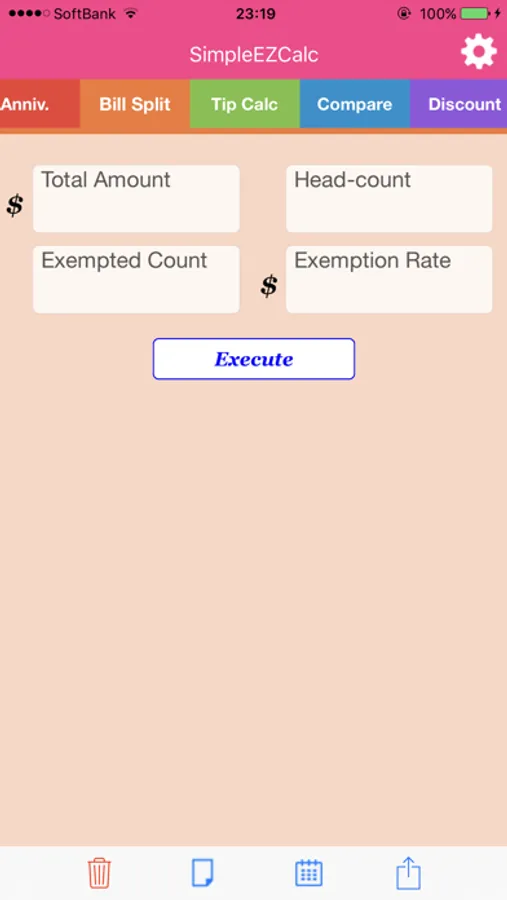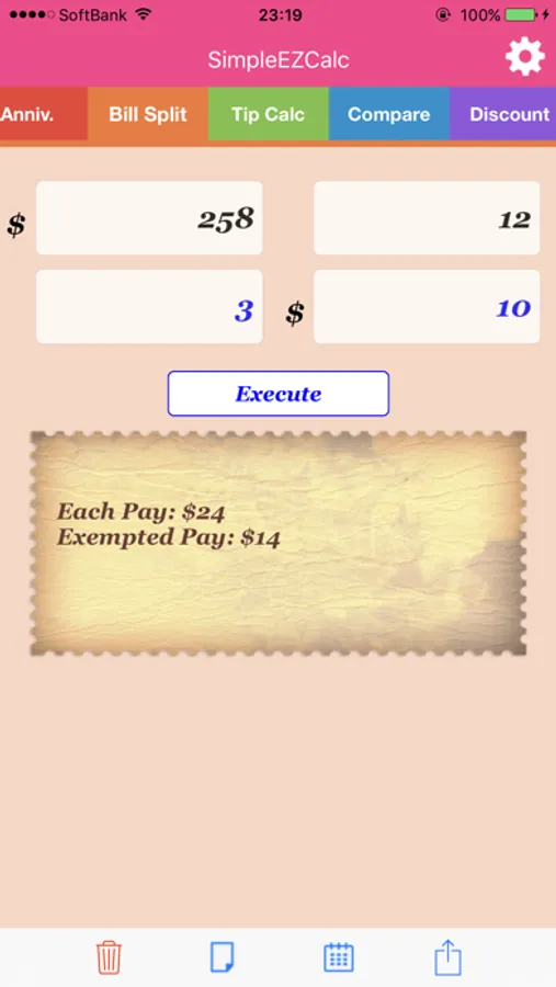 Ex.1) This app provides Each Pay from Total Amount and Head-count.