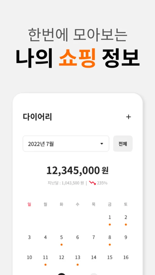 2) 다이어리 : 쇼핑몰을 연결하면 자동으로 채워지는 쇼핑일기장!(직접 입력도 가능!)