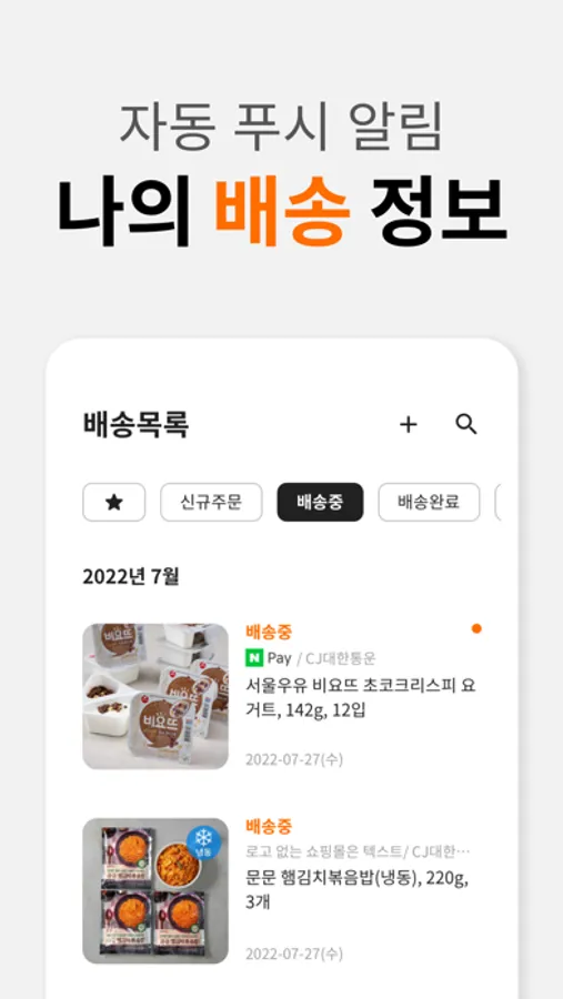 3) 배송목록 : 국내 최다 택배사 연동으로 어떤 택배사든 놓치지 않고 배송상태를 알림받아요.
