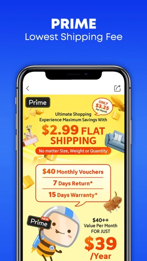 Sign up for prime and save now to enjoy $2.99 unlimited flat shipping and exclusive vouchers for only just $3.25/month!