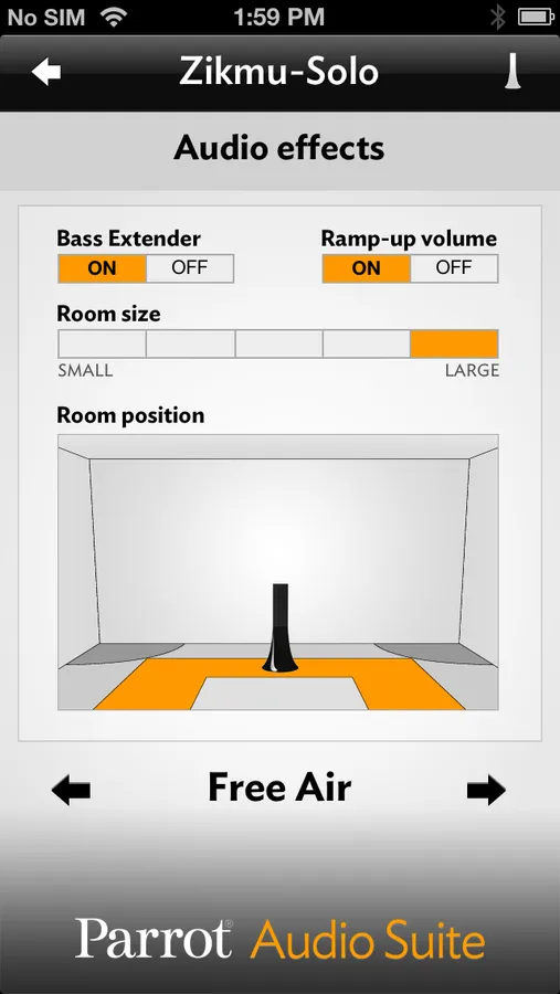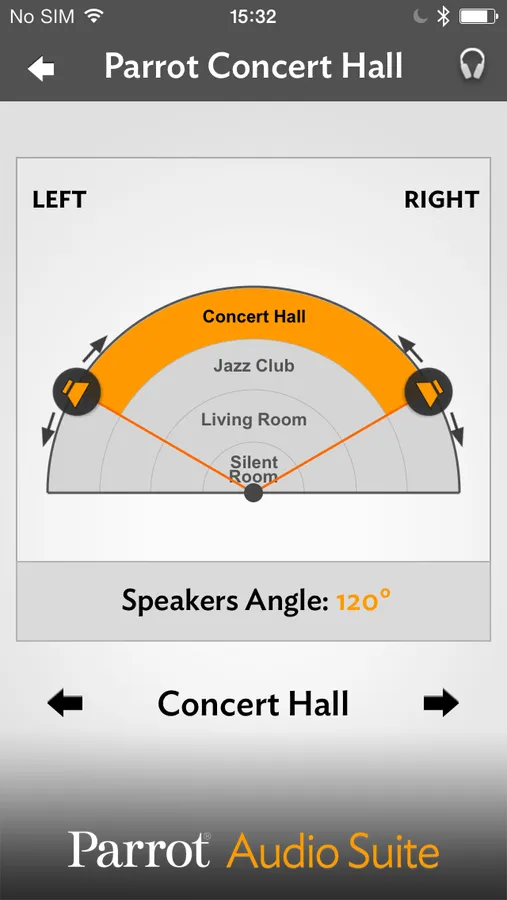 - Configure the Parrot Concert Hall Effect, to enhance your listening experience,