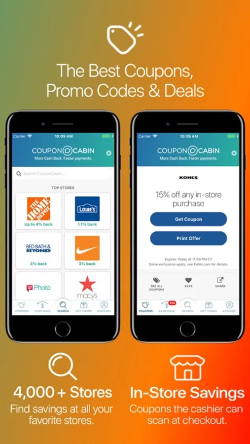 Save money, earn up to 5x more cash back and get paid faster with CouponCabin's free, easy-to-use money-saving app! No matter what you're shopping for, we can find a discount.