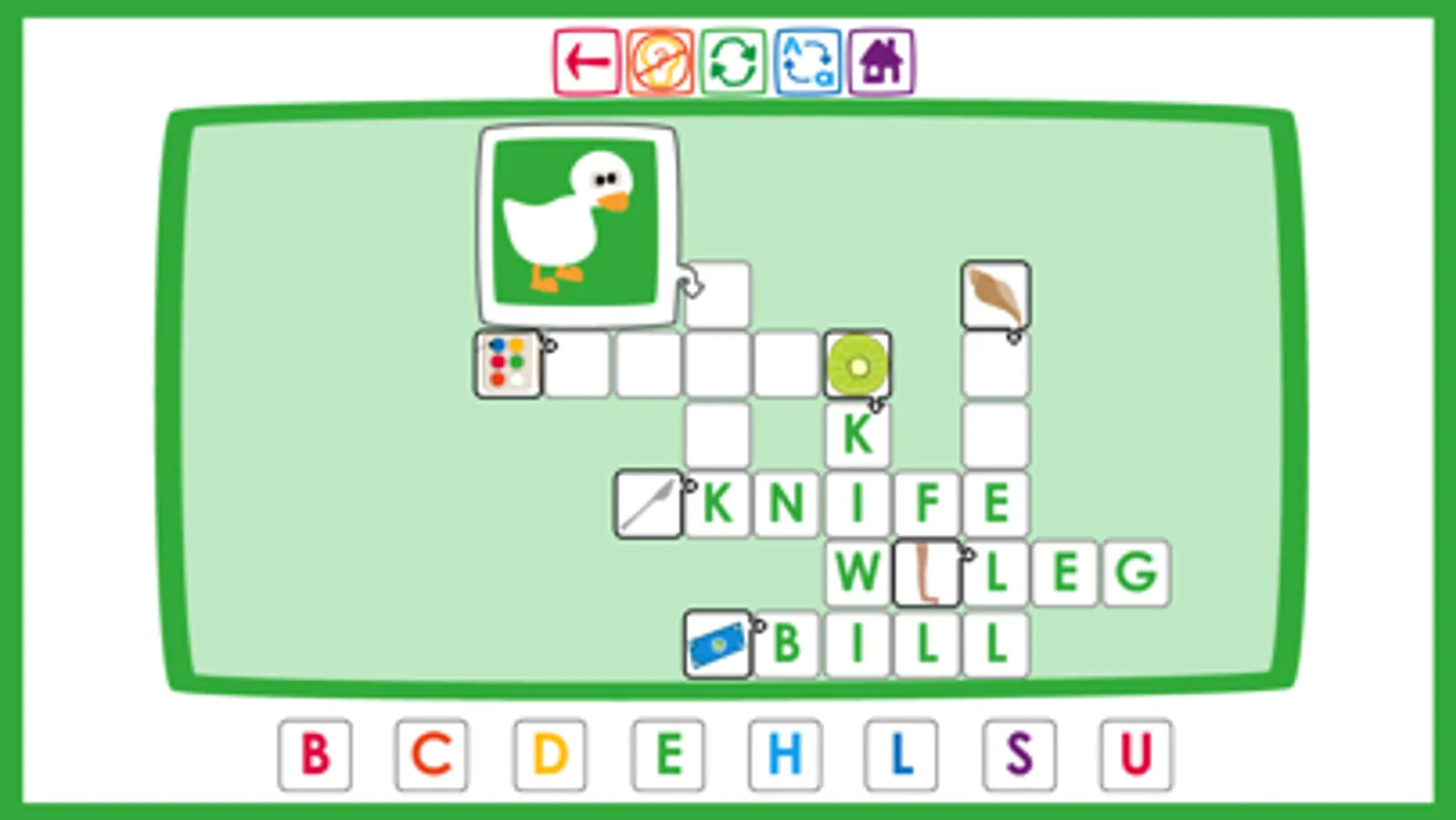 - Show/hide letters: Show the correct letter in the crossword. A good tool for small children who can not spell but like to play with the letters.