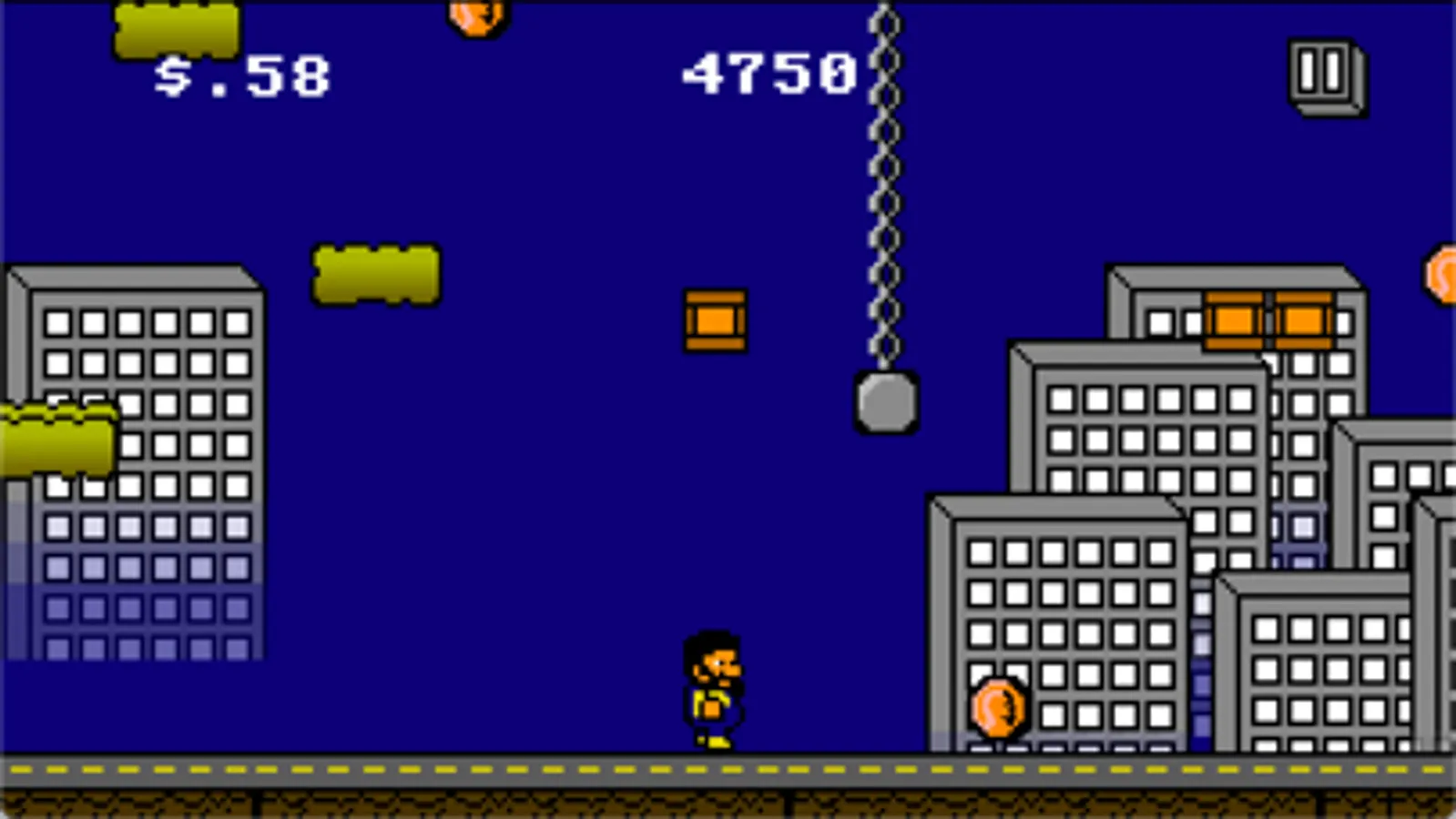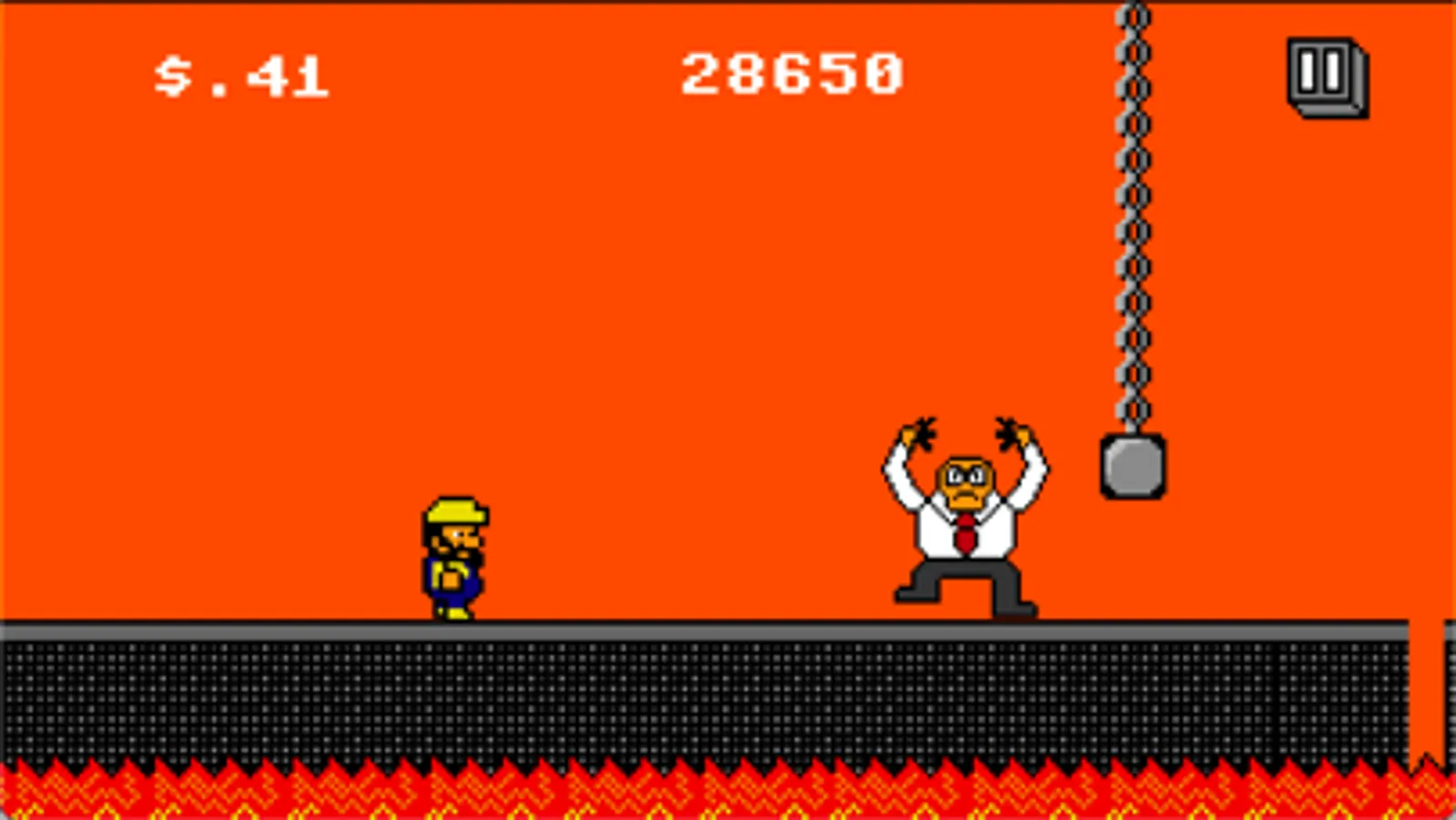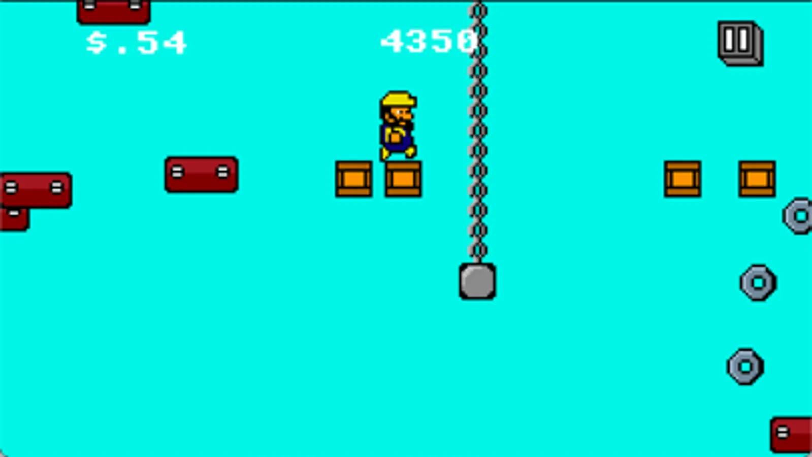It's another hard day at work for the construction worker, who finds himself once again trapped inside a strange 8-Bit sidescroller platformer world.