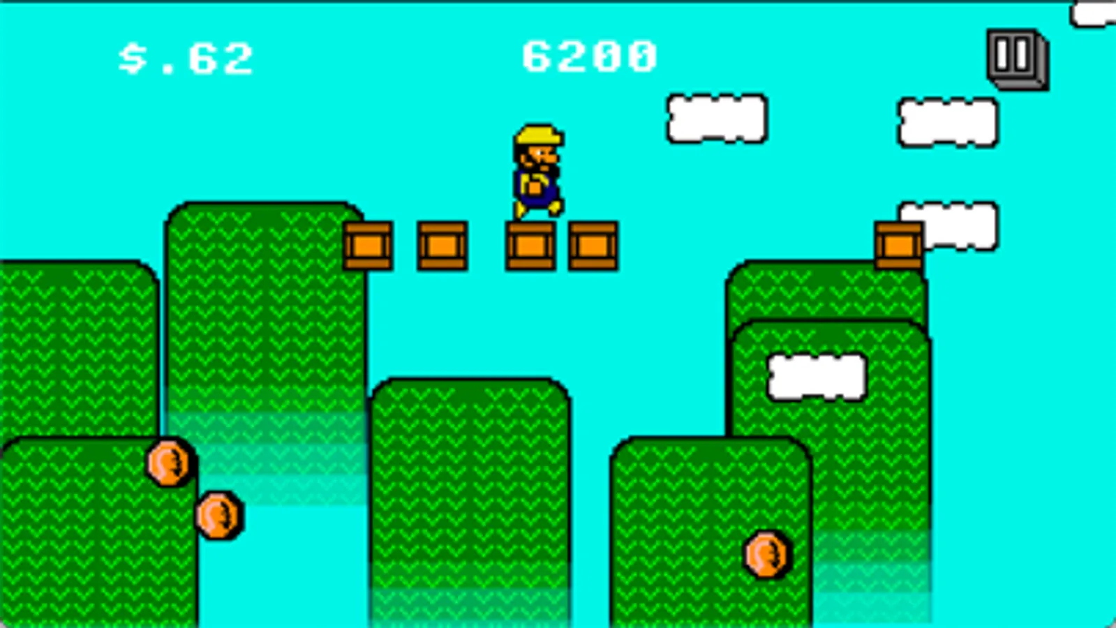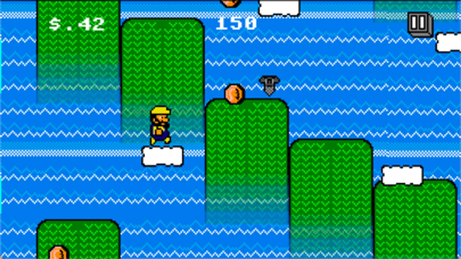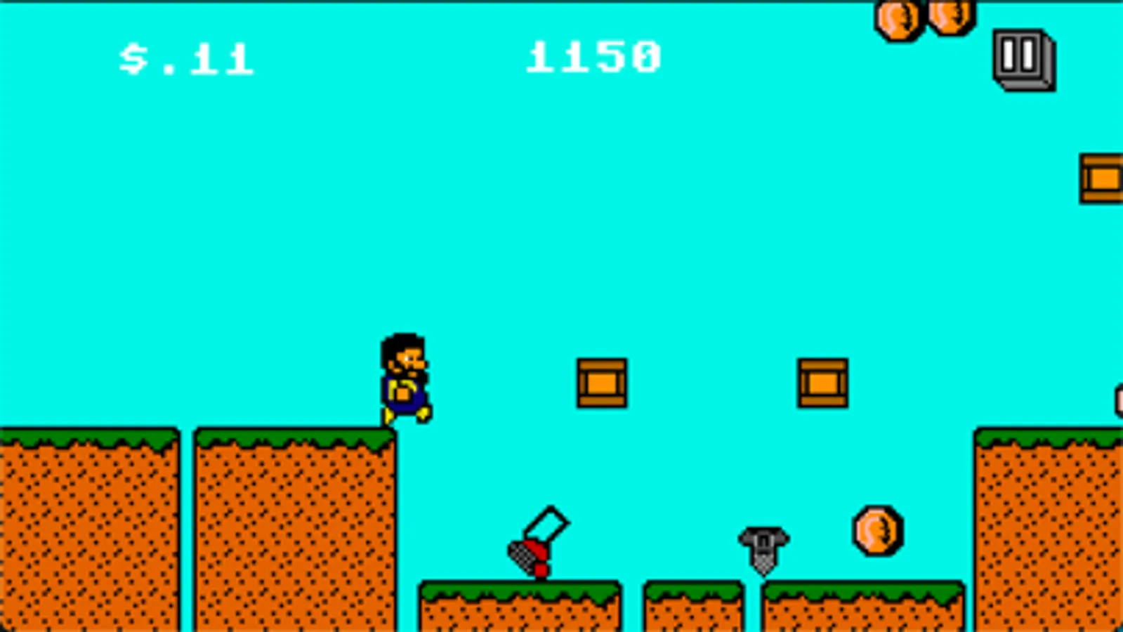 It's another hard day at work for the construction worker, who finds himself once again trapped inside a strange 8-Bit sidescroller platformer world.